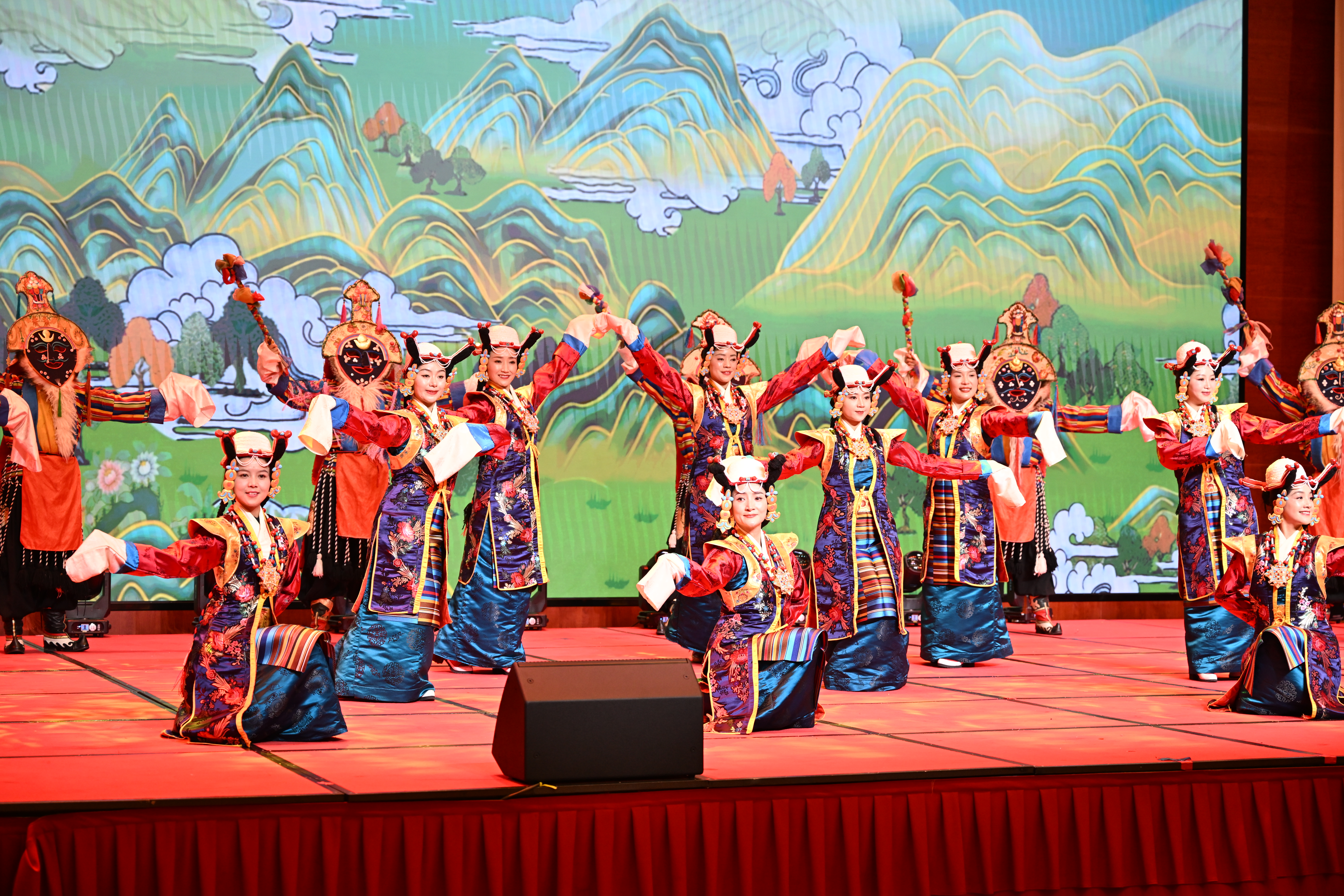 近日,西藏自治區(qū)各族各界喜迎2025年藏歷木蛇新年茶話(huà)會(huì)在拉薩舉行。這是文藝工作者正在表演節(jié)目。記者 旦增西旦 攝