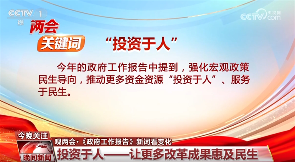 今年的政府工作報(bào)告中提到,強(qiáng)化宏觀政策民生導(dǎo)向,推動更多資金資源“投資于人”、服務(wù)于民生。把更多資金資源“投資于人”,就是將資金資源投入人的發(fā)展和保障上,讓更多改革發(fā)展成果直接作用在人身上。報(bào)告中,“居民醫(yī)保和基本公共衛(wèi)生服務(wù)經(jīng)費(fèi)人均財(cái)政補(bǔ)助標(biāo)準(zhǔn)分別再提高30元和5元”“城鄉(xiāng)居民基礎(chǔ)養(yǎng)老金最低標(biāo)準(zhǔn)再提高20元”“發(fā)放育兒補(bǔ)貼”等一系列可感可觸的民生福祉,是“投資于人”的具體體現(xiàn)。
