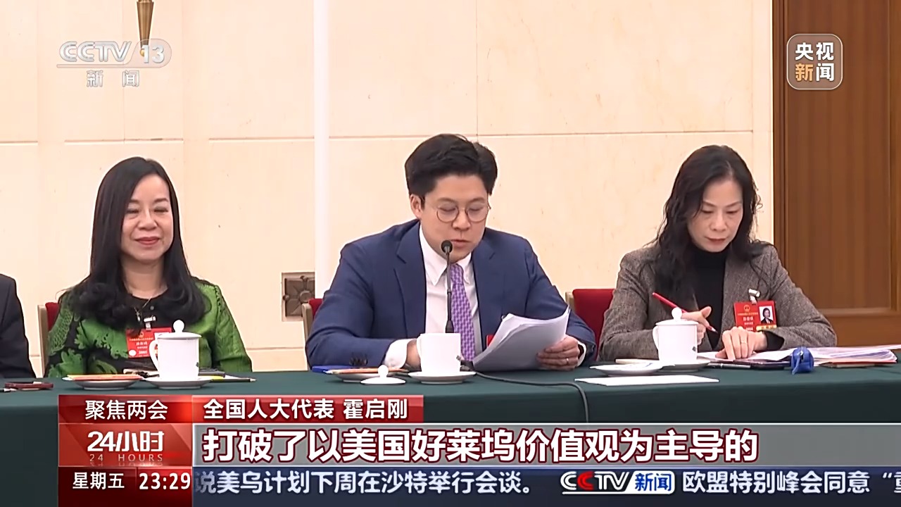 全國(guó)人大代表 霍啟剛:最近的《哪吒2》更創(chuàng)下票房歷史,打破了以美國(guó)好萊塢價(jià)值觀為主導(dǎo)的這種說故事的方式,成功以我們中國(guó)的故事和中國(guó)的哲學(xué)感染世界的觀眾。我認(rèn)為香港可以更加用文化+的概念跟理念,在文化產(chǎn)業(yè)發(fā)展上作出更多的貢獻(xiàn),更以香港國(guó)際橋梁和傳統(tǒng)優(yōu)勢(shì),實(shí)現(xiàn)中國(guó)文化抱團(tuán)出海等,讓文化事業(yè)和文化產(chǎn)業(yè)得以相輔相成,把香港發(fā)揮成中華文化產(chǎn)業(yè)中的“金融港”和“出口港”。