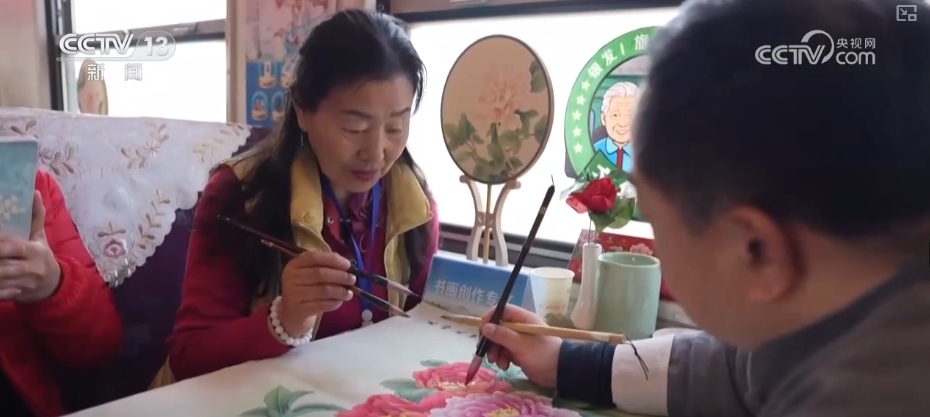 車行期間,列車上安排了豐富的活動,有歌舞表演、知識競猜,還可以體驗制作膠東花餑餑。此外,書畫創(chuàng)作區(qū)、心理咨詢區(qū)、健康監(jiān)測區(qū)等,也能讓旅客度過既充實又快樂的“慢時光”。