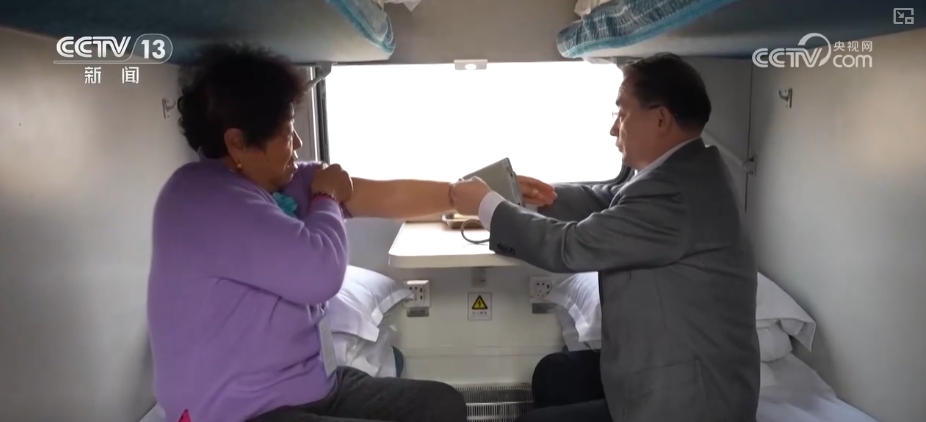 除了為重點老年旅客配備緊急呼叫定位器,銀發(fā)專列上還引入了適老化的AI智能旅行監(jiān)護設備,并安排兩名專業(yè)醫(yī)生全程車廂巡診,隨時為老年人提供健康管理服務。