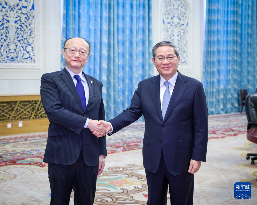 3月24日下午,國務(wù)院總理李強(qiáng)在北京人民大會堂會見亞洲開發(fā)銀行行長神田真人。新華社記者 劉彬 攝
