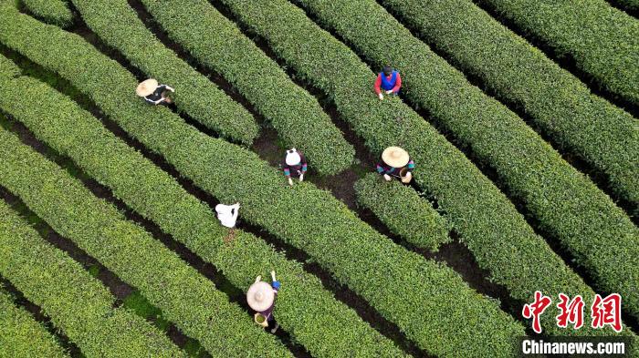 茶園中,侗鄉(xiāng)茶娘腰挎竹簍,穿梭于茶壟間,她們身姿輕盈、手指翻飛,忙碌身影與翠綠茶樹相映成趣,宛若五線譜上的躍動音符,歡快彈奏春日豐收樂章。