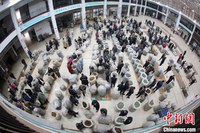 近日,在廣西三江侗族自治縣三江茶城,民眾在銷售干茶。龔普康 攝