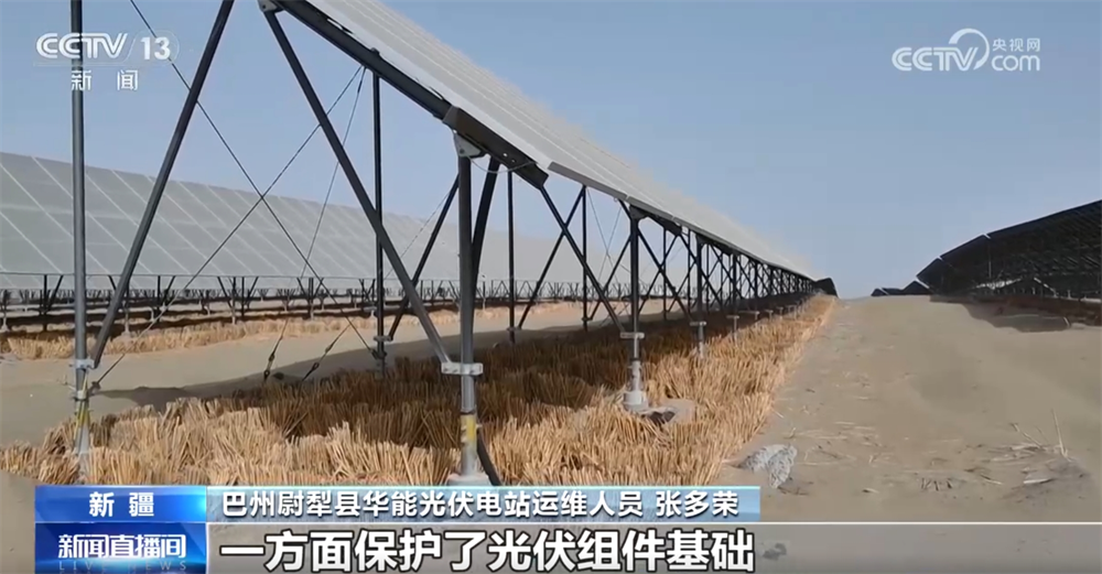 巴州尉犁縣華能光伏電站運維人員張多榮稱:“大概兩個月時間就能抽穗發(fā)芽了,一方面保護了光伏組件基礎(chǔ)不被黃沙掩埋或掏空,另一方面改善了周圍環(huán)境?!?/p>
