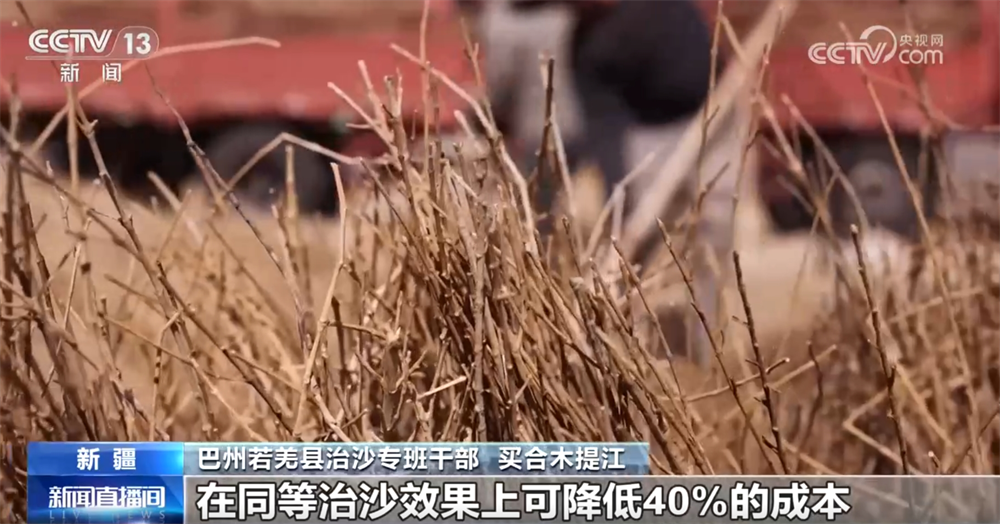 巴州若羌縣治沙專班干部買合木提江稱:“首次采用了“間隔治沙”這項創(chuàng)新治理模式,治理面積7.8萬畝,在同等治沙效果上可降低40%的成本?!?/p>