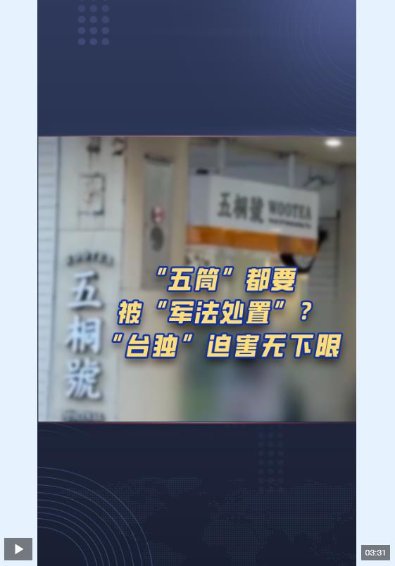 最近一段時(shí)間,民進(jìn)黨當(dāng)局打壓迫害島內(nèi)支持兩岸和平發(fā)展人士的行為,已經(jīng)到了喪心病狂的地步,甚至有家奶茶店因?yàn)榻小拔逋┨?hào)”,而被綠營(yíng)抵制說(shuō)是在諧音“武統(tǒng)好”,難怪有人諷刺:如今的臺(tái)灣,打麻將說(shuō)“五筒”都會(huì)被“軍法處置”。有島內(nèi)輿論指出,賴清德違逆民意拋出“17項(xiàng)策略”,是“戒嚴(yán)再起、‘臺(tái)獨(dú)’叫陣”,是“綠色恐怖執(zhí)政”。臺(tái)灣社會(huì)各界也紛紛表達(dá)不滿: