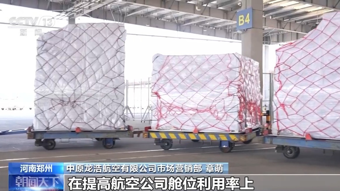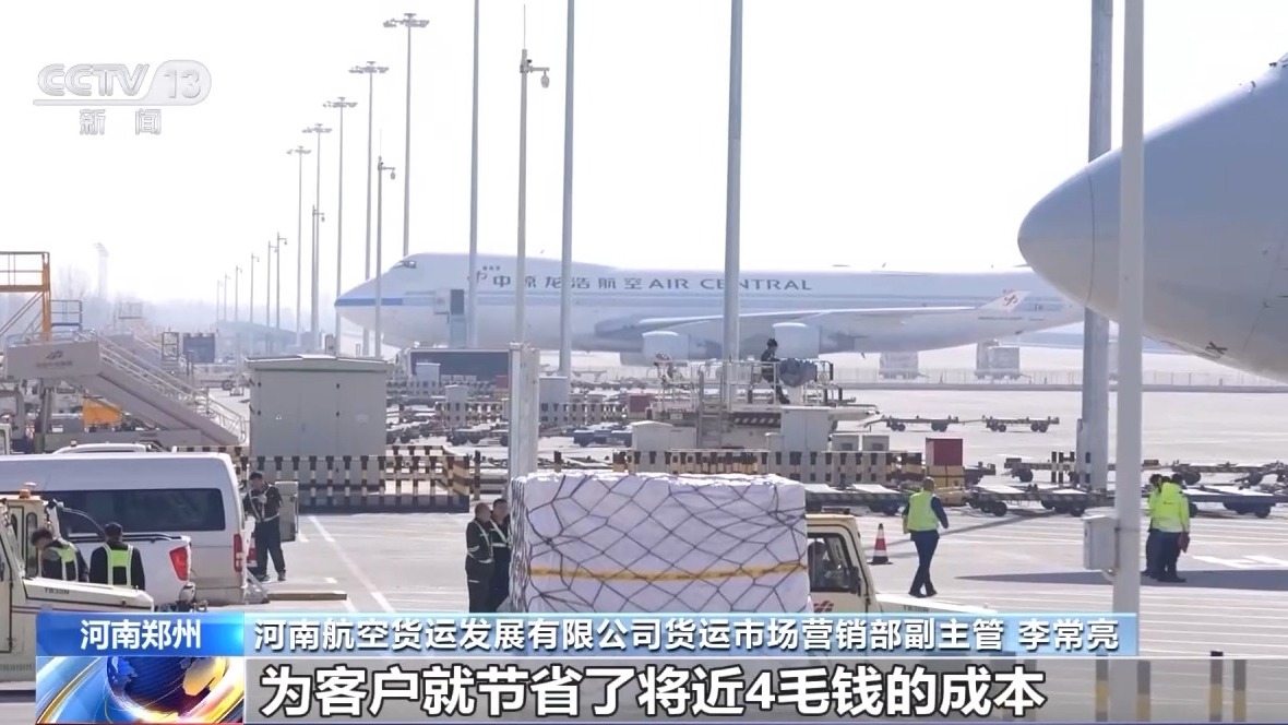 河南航空貨運發(fā)展有限公司貨運市場營銷部 李常亮:時效能夠提升3到6個小時,而且我們現(xiàn)在對中轉貨實行一次性收費,算下來相當于我們一公斤為客戶就節(jié)省了將近4毛錢的成本。