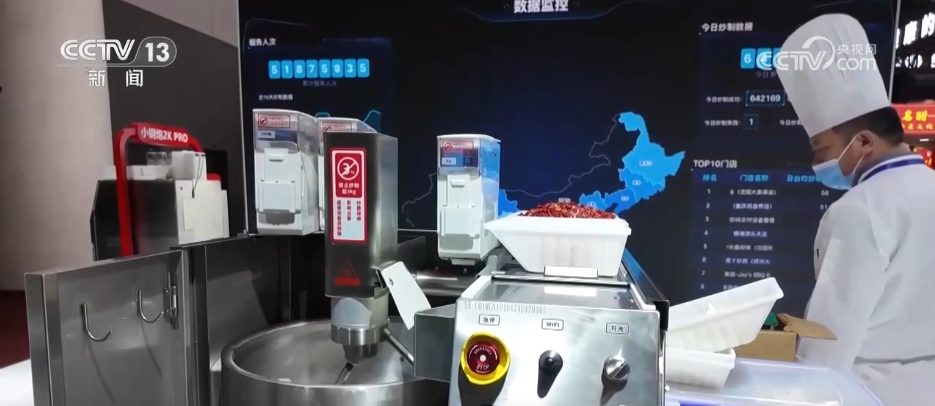 記者在春糖會首次設(shè)立的人工智能設(shè)備專區(qū)看到,應(yīng)用AI模型的新裝備正加速進入餐飲食品和大健康領(lǐng)域。這個橡鹿機器人還在現(xiàn)場亮出“絕活”,三五分鐘就炒出了四川辣子雞和麻婆豆腐。