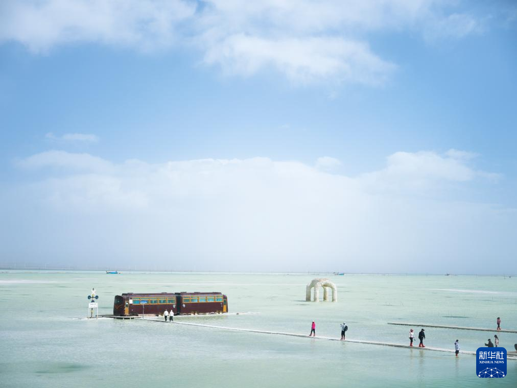 3月26日,搭乘入藏旅游專(zhuān)列的旅客在青海茶卡鹽湖景區(qū)游玩。