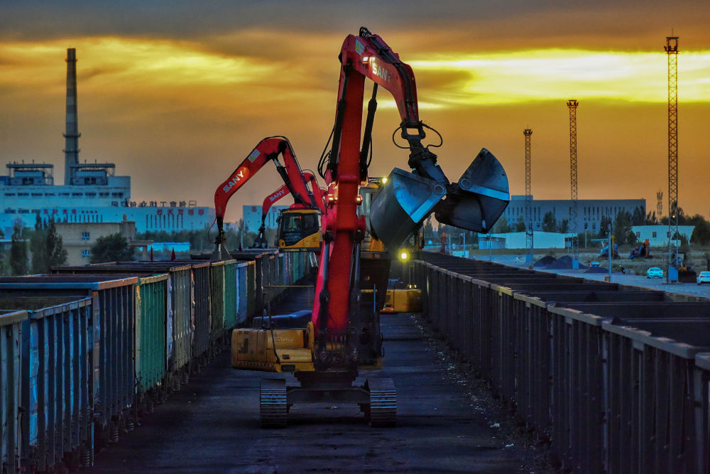 新疆霍爾果斯站換裝庫(kù)換十線(xiàn)抓料機(jī)對(duì)散堆裝貨物換裝作業(yè)(2023年9月6日攝)。新華社記者 趙戈 攝