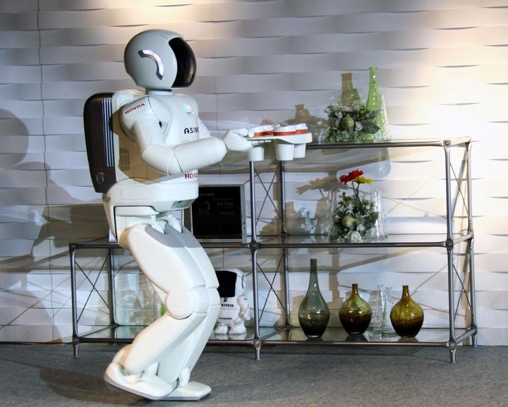 本世紀(jì)初,日本本田公司發(fā)布一款酷似太空宇航員的人形機(jī)器人ASIMO(阿西莫),能上下樓梯,聽懂語音指令。2013年美國波士頓動(dòng)力公司發(fā)布的人形機(jī)器人Atlas在跑步機(jī)上健步如飛,還能跳躍、旋轉(zhuǎn)、翻滾等,它為災(zāi)難現(xiàn)場而設(shè)計(jì),目標(biāo)是在化學(xué)泄漏、建筑倒塌等危險(xiǎn)區(qū)域替代人類完成開關(guān)閥門、搬運(yùn)等任務(wù)。