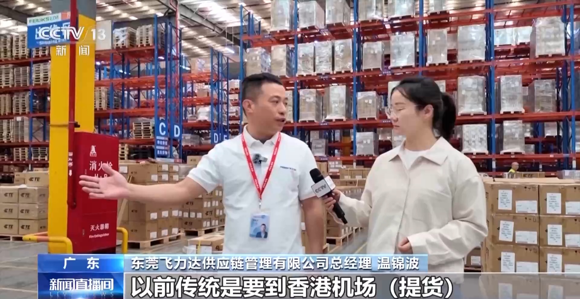 東莞飛力達供應(yīng)鏈管理有限公司總經(jīng)理 溫錦波:以前傳統(tǒng)是要到香港機場提貨,現(xiàn)在不用拆包、不用申報,直接拉到空港中心,再進行一站式的進口申報。在我們家門口500米,就可以提回來倉庫,非常方便。