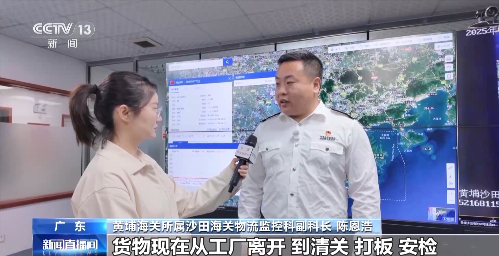 黃埔海關(guān)所屬沙田海關(guān)物流監(jiān)控科副科長 陳恩浩:貨物現(xiàn)在從工廠離開,到清關(guān)、打板、安檢、裝船以及發(fā)運整個環(huán)節(jié),最快可以在14個小時內(nèi)完成。我們還在不斷優(yōu)化流程、提高效率,未來預(yù)計還可以節(jié)約2到3小時。