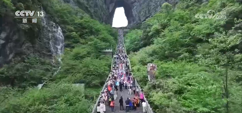 在湖南張家界天門山景區(qū),“五一”假期開(kāi)展了非遺民俗秀活動(dòng)。民俗民間藝人們開(kāi)展非遺巡游,表演了土家舞獅、土家三棒鼓、土家梯瑪舞等具有濃郁土家族特色的節(jié)目,吸引中外游客駐足觀看。