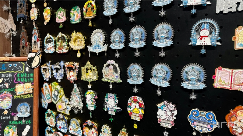 假日期間,各大文博場(chǎng)館、歷史文化街區(qū)等把握住機(jī)遇,推陳出新,創(chuàng)新形式,滿(mǎn)足游客多元化需求。哈爾濱中央大街將城市文化與AR技術(shù)相融合,推出了兼具科技感與城市文化的文創(chuàng)產(chǎn)品?!斑@款冰箱貼在去年的基礎(chǔ)上做了一個(gè)全新升級(jí),結(jié)合AR技術(shù),通過(guò)手機(jī)‘掃一掃’功能,可以看到一個(gè)動(dòng)態(tài)視頻,實(shí)現(xiàn)裸眼3D的效果?!敝醒氪蠼铸埢浤Х熊?chē)總經(jīng)理于洋說(shuō)。