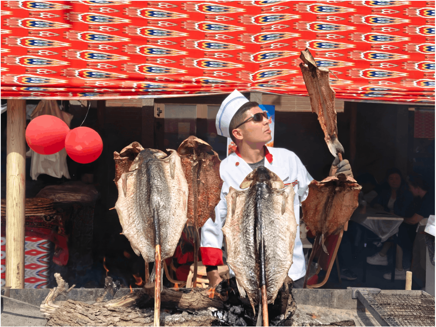 以“烤”為筆、以“味”為墨,2025新疆·尉犁第十二屆羅布人民俗燒烤季繪就一幅熱鬧非凡、充滿地方特色的鮮活畫(huà)卷,吸引全疆乃至全國(guó)游客共赴一場(chǎng)美味之約。百余個(gè)燒烤攤位沿青石板路在達(dá)西馕街有序排開(kāi),胡楊木炭在烤爐中明明滅滅,將印著艾德萊斯紋樣的遮陽(yáng)棚映成流動(dòng)的彩緞。本屆燒烤季活動(dòng)整合全縣8個(gè)鄉(xiāng)鎮(zhèn)的特色美食與文旅資源,帶動(dòng)200余戶農(nóng)牧民增收,讓烤肉、烤鴿子、烤魚(yú)等“鄉(xiāng)味”變身“網(wǎng)紅”,推動(dòng)“舌尖經(jīng)濟(jì)”向“品牌經(jīng)濟(jì)”不斷升級(jí)。