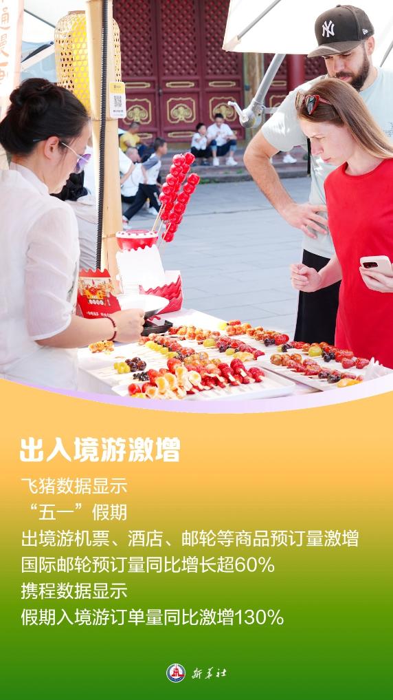出境游、入境游市場(chǎng)持續(xù)升溫。飛豬數(shù)據(jù)顯示,“五一”假期,出境游機(jī)票、酒店、郵輪等商品預(yù)訂量激增,其中國(guó)際郵輪預(yù)訂量同比增長(zhǎng)超60%。攜程數(shù)據(jù)顯示,今年“五一”假期期間,入境游訂單量同比激增130%。