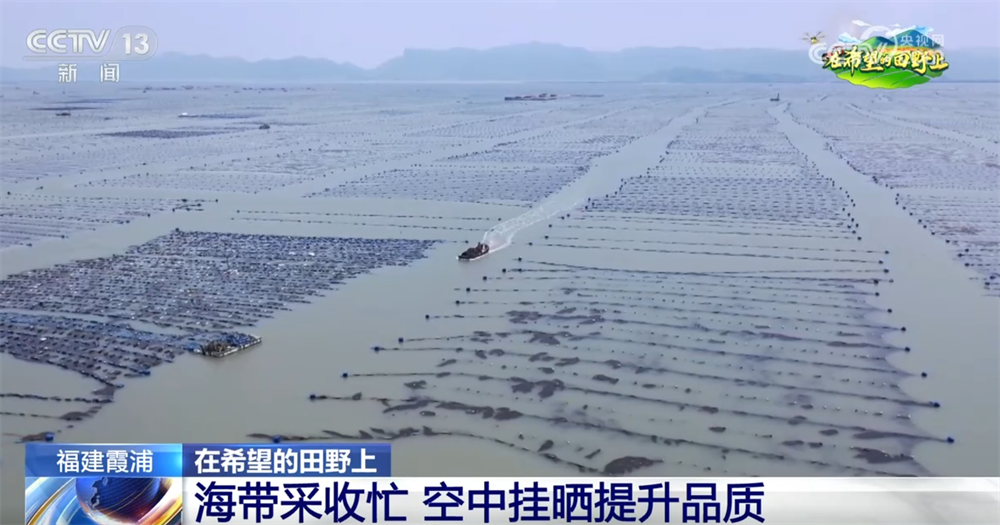 在寧德市霞浦縣的海帶養(yǎng)殖區(qū),一根根掛滿海帶的繩索整齊地漂浮在海面上,猶如一片“海上田園”。漁民們駕駛著小船,在海面上忙著收獲海帶。他們利用滑輪和吊桿,將掛滿海帶的繩索拉到船上進行割采。為了延長海帶的保存時間,收上來的這些海帶在3小時內(nèi)就要運抵晾曬場。