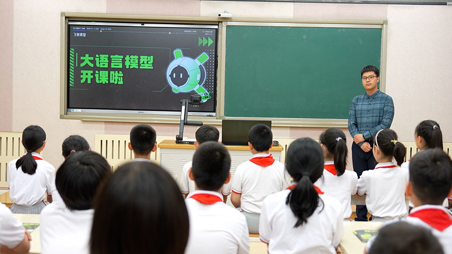 圖為北京府學胡同小學師生在上AI課程。新華社記者 楊志剛