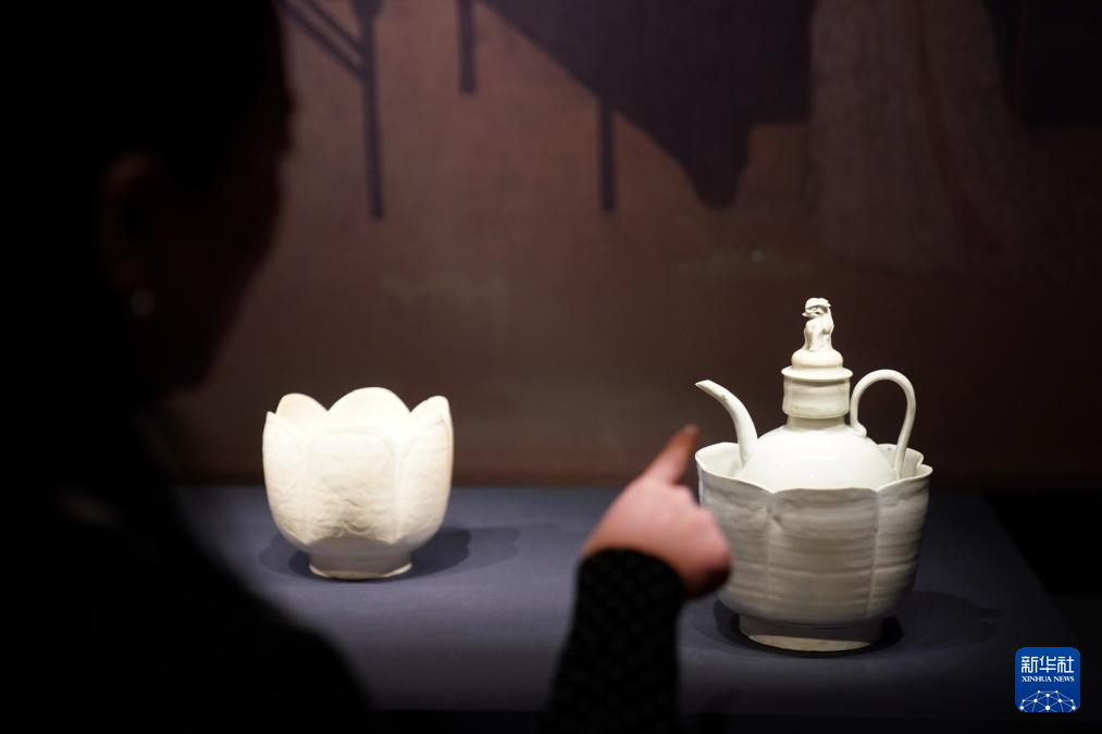 繼續(xù)前行,便來到“跨越文化——胡食風尚”單元。故宮博物院藏唐代鳳首壺與舊金山亞洲藝術博物館藏鳳首壺“并肩而立”,它們獨特的把手與流口設計,仿佛訴說著胡人傾注式倒酒習俗對中原的影響。