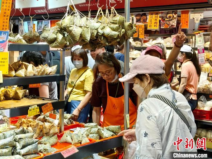 5月30日,臺(tái)灣迎來(lái)端午節(jié)連假,各大市場(chǎng)粽香四溢,民眾紛紛前往選購(gòu)粽子等節(jié)慶美食。圖為臺(tái)北南門市場(chǎng),商家正在售賣“北部粽”與“南部粽”。中新社記者 張曉曦 攝