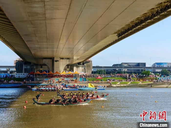 5月30日,臺(tái)灣迎來(lái)端午節(jié)連假,全臺(tái)多地舉行龍舟比賽等活動(dòng)。圖為臺(tái)北大佳河濱公園,2025臺(tái)北國(guó)際龍舟錦標(biāo)賽首日比賽正在進(jìn)行。中新社記者 張曉曦 攝