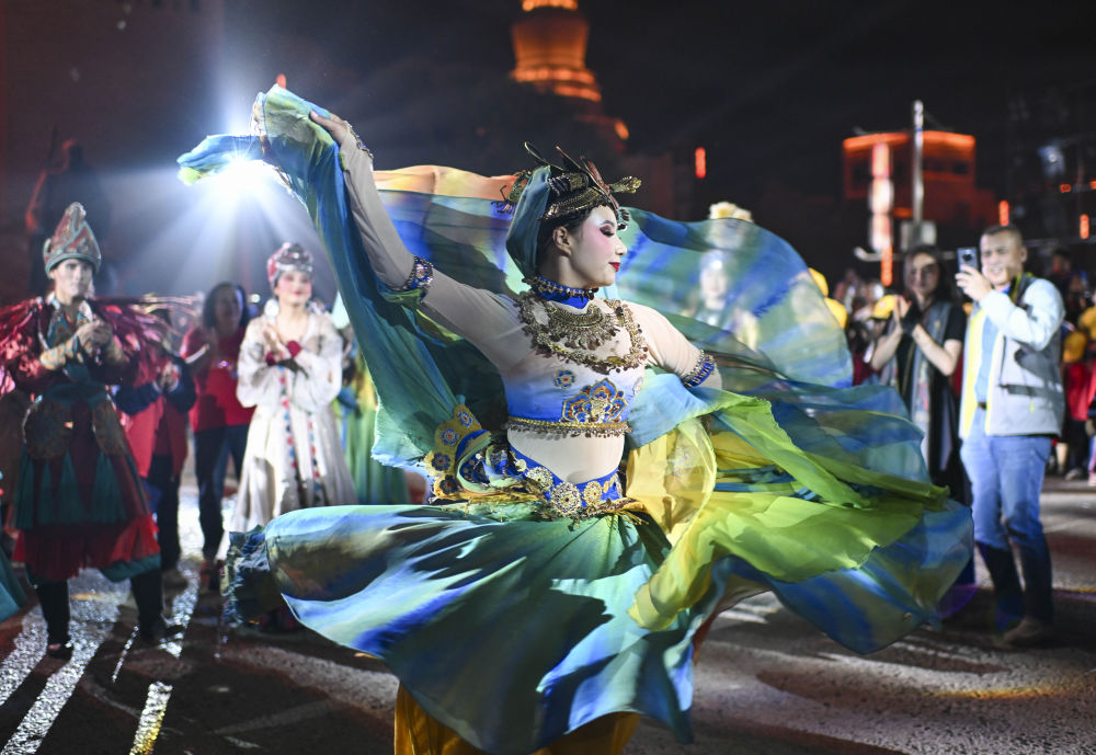↑這是2024年6月5日在新疆和田地區(qū)約特干故城景區(qū)拍攝的演出現(xiàn)場。新華社記者 胡虎虎 攝