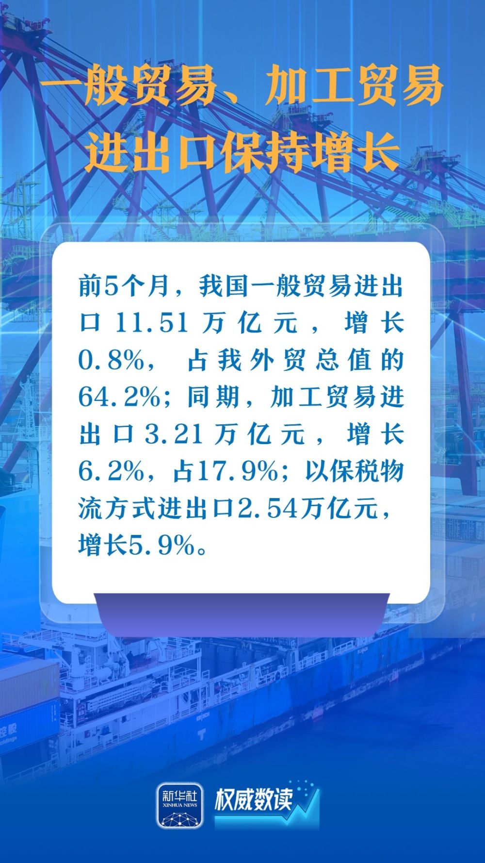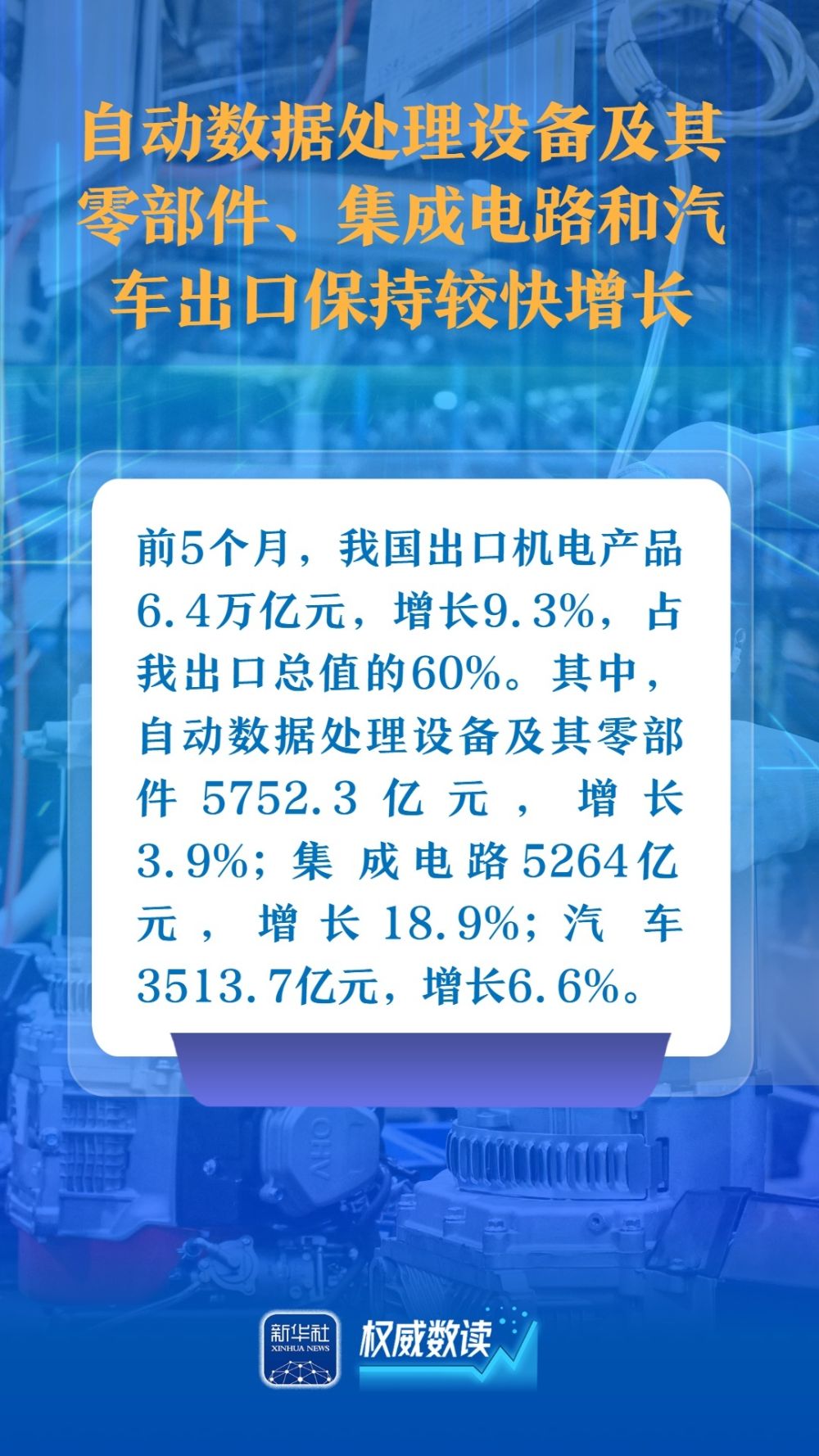 海關(guān)總署9日發(fā)布數(shù)據(jù),今年前5個(gè)月,我國貨物貿(mào)易進(jìn)出口總值17.94萬億元人民幣,同比增長2.5%。以下幾組數(shù)據(jù),展示出我國對外貿(mào)易在外部壓力下依然保持較強(qiáng)韌性。