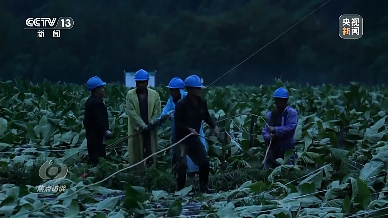 運(yùn)線、接線、試驗(yàn)……雨夜中,隊(duì)員們分工協(xié)作,借助車燈和探照燈的光亮,將一根1100米長(zhǎng)、近4噸重的電纜拉過(guò)大橋,沿著公路邊緣一路拉到變壓器旁。大雨中作業(yè),雨水很快就打濕了他們的衣服。為了搶修進(jìn)度,高空作業(yè)人員在電桿上一待就是好幾個(gè)小時(shí)。