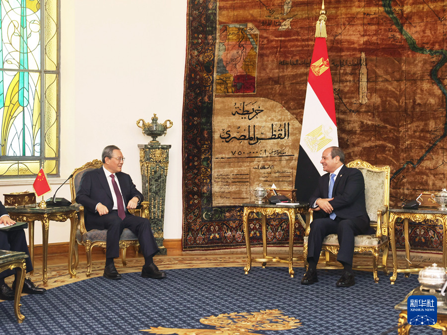 李強(qiáng)首先轉(zhuǎn)達(dá)習(xí)近平主席對塞西總統(tǒng)的親切問候。李強(qiáng)表示,近年來,在兩國元首戰(zhàn)略引領(lǐng)下,中埃關(guān)系蓬勃發(fā)展。中方愿同埃方一道,以明年中埃建交70周年為契機(jī),賡續(xù)傳統(tǒng)友誼,鞏固政治互信,在涉及彼此核心利益問題上繼續(xù)堅(jiān)定相互支持,不斷豐富中埃全面戰(zhàn)略伙伴關(guān)系內(nèi)涵,推動(dòng)兩國各領(lǐng)域合作取得更多成果,朝著構(gòu)建面向新時(shí)代的中埃命運(yùn)共同體的目標(biāo)持續(xù)邁進(jìn)。