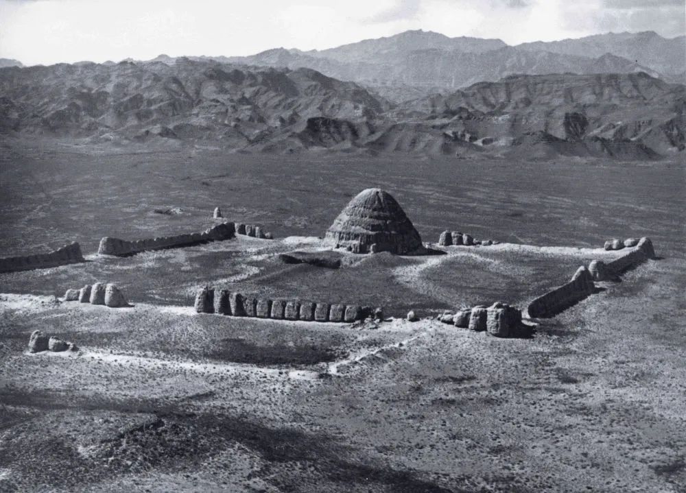 20世紀(jì)30年代,一位德國飛行員在寧夏銀川飛掠過賀蘭山。山前的幾個(gè)“土堆”兀然而現(xiàn),立刻引起了他的注意,他不由得用相機(jī)記錄下眼前奇景。