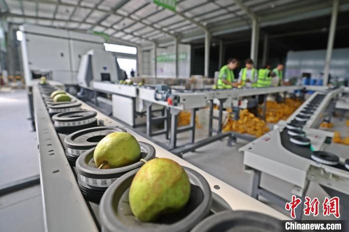 在鎮(zhèn)上新建的百里洲砂梨智慧產(chǎn)業(yè)園,園內(nèi)的精細化檢測分選設(shè)備令人眼前一亮:自動化分選線上,每顆砂梨都要通過“X光體檢”,重量、糖度、黑心等內(nèi)部指標合格方能進入包裝環(huán)節(jié)。