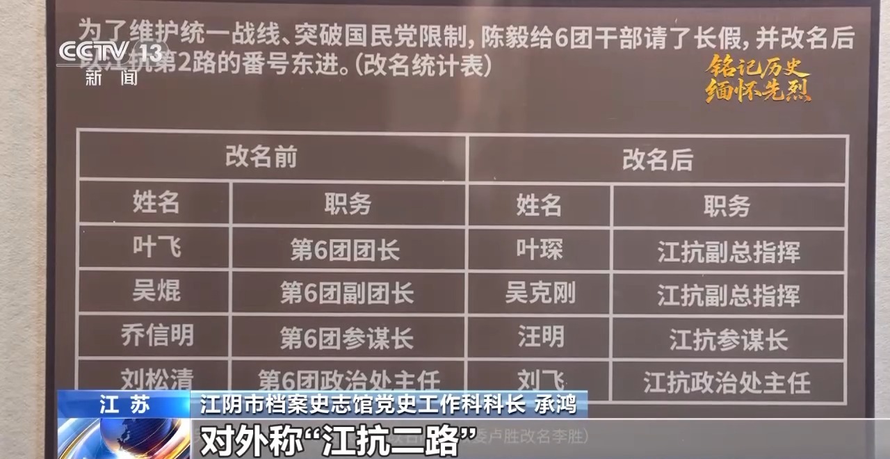 江陰市檔案史志館黨史工作科科長 承鴻:1939年4月,新四軍軍部部署六團(tuán)準(zhǔn)備向東路地區(qū)發(fā)展。5月,六團(tuán)在葉飛、吳焜等率領(lǐng)下,從(江蘇)茅山地區(qū)出發(fā)東進(jìn)。為了防止國民黨頑固派阻撓和破壞,六團(tuán)沿用“江南抗日義勇軍”的番號(hào),以地方抗日武裝的名義,對(duì)外稱江抗二路。吳焜化名吳克剛,任副總指揮兼二路司令,隨同葉飛東進(jìn)。