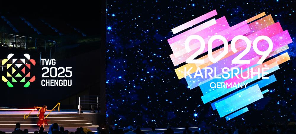 成都世運(yùn)會組委會主席施小琳、國際世界運(yùn)動會協(xié)會主席何塞·佩魯雷納先后致辭,向?yàn)楸緦檬肋\(yùn)會圓滿成功作出貢獻(xiàn)的所有人員表示感謝。下屆世運(yùn)會舉辦城市德國卡爾斯魯厄市市長弗蘭克·門特魯普致辭,熱情邀請全球賓客四年后相聚卡爾斯魯厄。