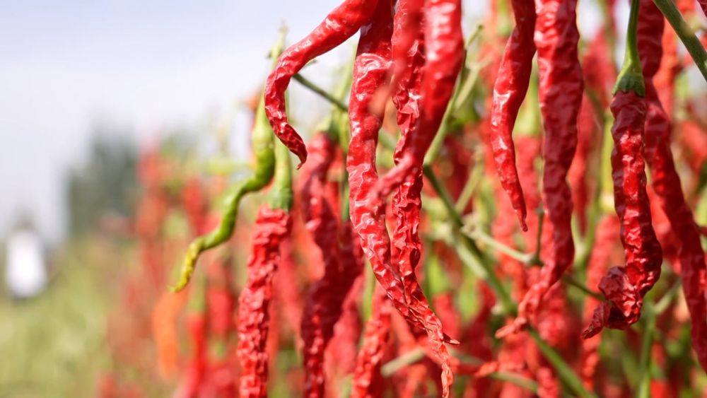 眼下,新疆巴音郭楞蒙古自治州焉耆縣的14萬畝工業(yè)辣椒進(jìn)入采收季,種植戶搶抓晴好天氣采摘辣椒。