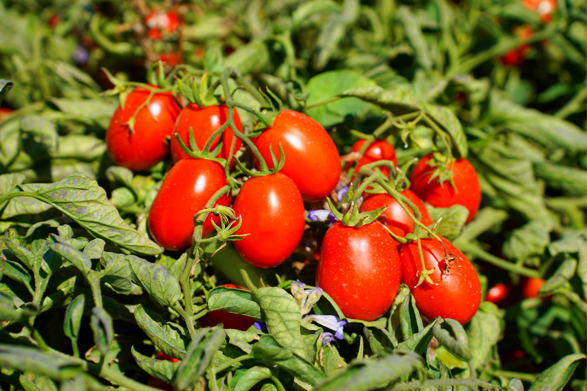 新疆吉木薩爾縣紅彤彤的番茄掛滿(mǎn)枝頭(吳欣昊 攝)