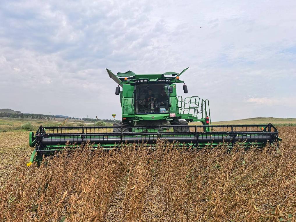 黑龍江省七臺(tái)河市勃利縣恒山玉米專業(yè)合作社大豆收獲現(xiàn)場(chǎng)。(受訪者供圖)