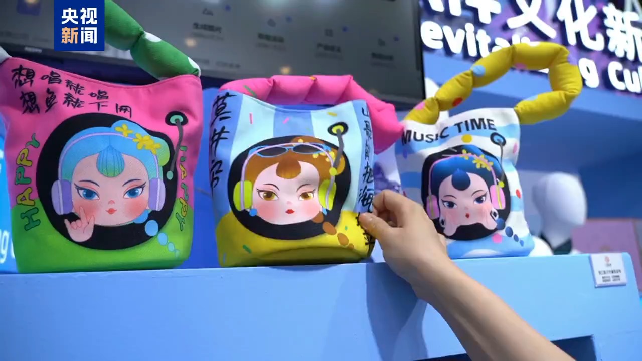 總臺央視記者 張歆:在人工智能專館,除了有炫酷的機(jī)器人,我們可以看到,這個水桶包就是由人工智能提供靈感的,以劉三姐為IP形象的文創(chuàng)產(chǎn)品。那么這個水桶包還引用了劉三姐山歌的內(nèi)容,“山歌能把海填平”。