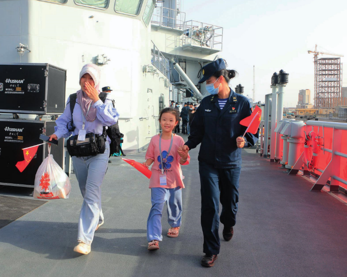 從中國海軍軍艦首次參與在人道主義危機(jī)中撤離平民行動開始,就注重進(jìn)行國際人道主義救援。2015年,緊急趕赴也門,幫助除中國公民外的15個國家的279名外國公民安全撤離。2023年,緊急赴蘇丹撤僑,第二批撤離人員中包括221名巴基斯坦、巴西等國人員。