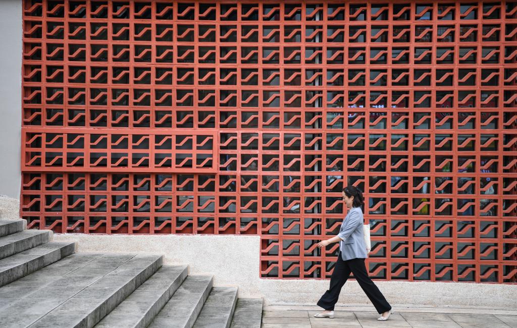 2023年4月28日,在竣工亮相的民主村片區(qū)城市更新項目(一期),人們在一處公共空間休息(無人機照片)。