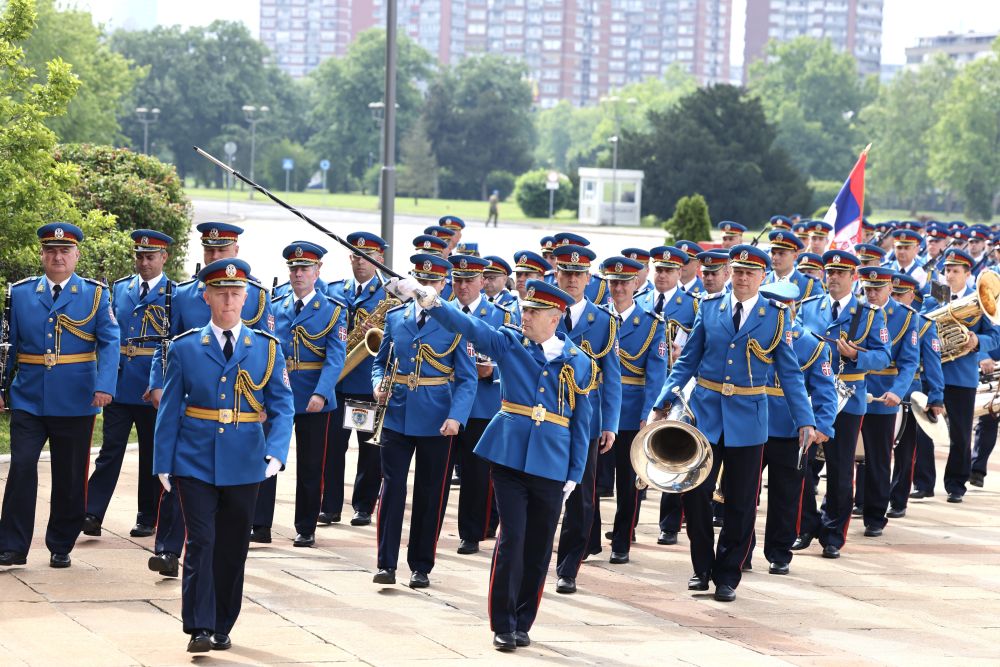 當地時間5月8日,國家主席習近平在貝爾格萊德出席塞爾維亞總統(tǒng)武契奇舉行的隆重盛大歡迎儀式。歡迎儀式在塞爾維亞大廈南廣場舉行。兩國元首共同登上檢閱臺,軍樂團奏響中塞兩國國歌,鳴10響禮炮。習近平在武契奇陪同下檢閱儀仗隊。