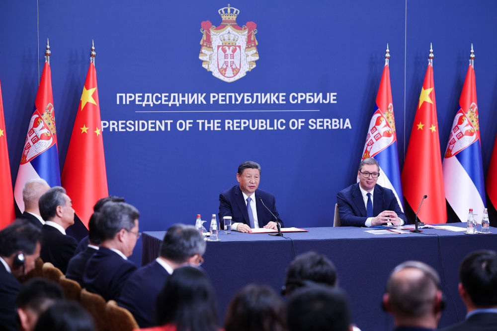 歡迎儀式后,國家主席習近平在貝爾格萊德塞爾維亞大廈同塞爾維亞總統(tǒng)武契奇舉行會談。