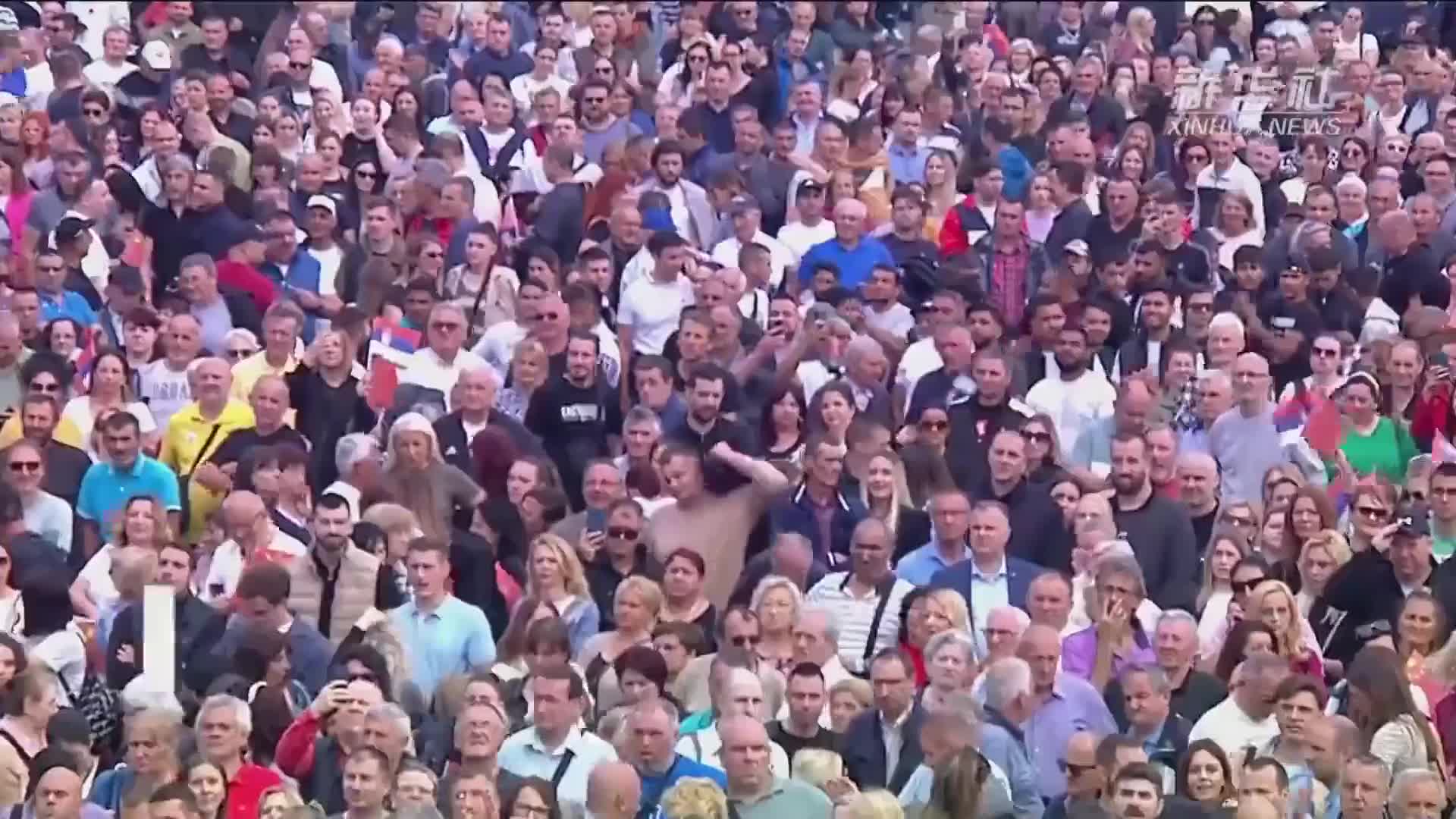 歡迎儀式結(jié)束后,他們穿過塞爾維亞大廈的大廳,走到另一側(cè)大門。大門外的廣場,人山人海,無比壯觀。
