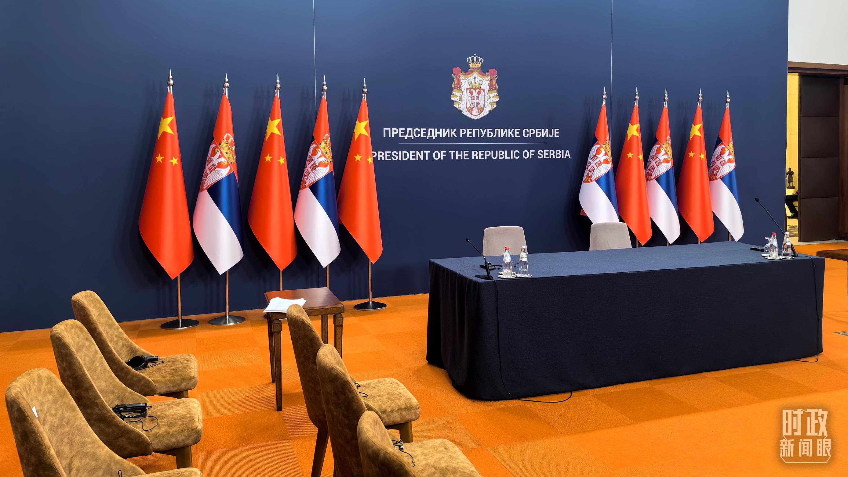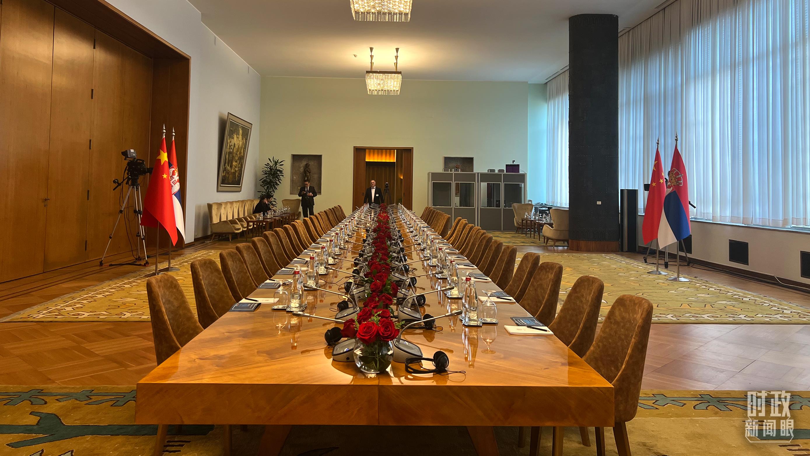 5月8日上午,習(xí)主席同武契奇總統(tǒng)舉行大范圍會(huì)談,這是會(huì)談開(kāi)始前的現(xiàn)場(chǎng)。(總臺(tái)央視記者張洛嘉拍攝)