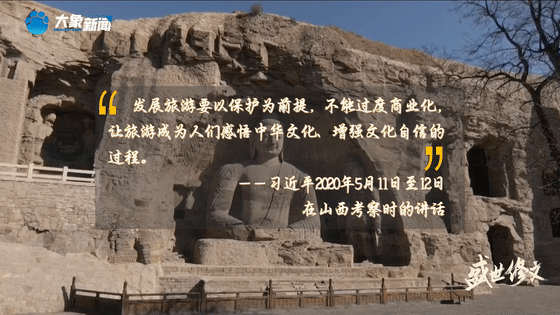 云岡石窟是世界文化遺產(chǎn),保護(hù)好云岡石窟,不僅具有中國意義,而且具有世界意義。歷史文化遺產(chǎn)是不可再生、不可替代的寶貴資源,要始終把保護(hù)放在第一位。