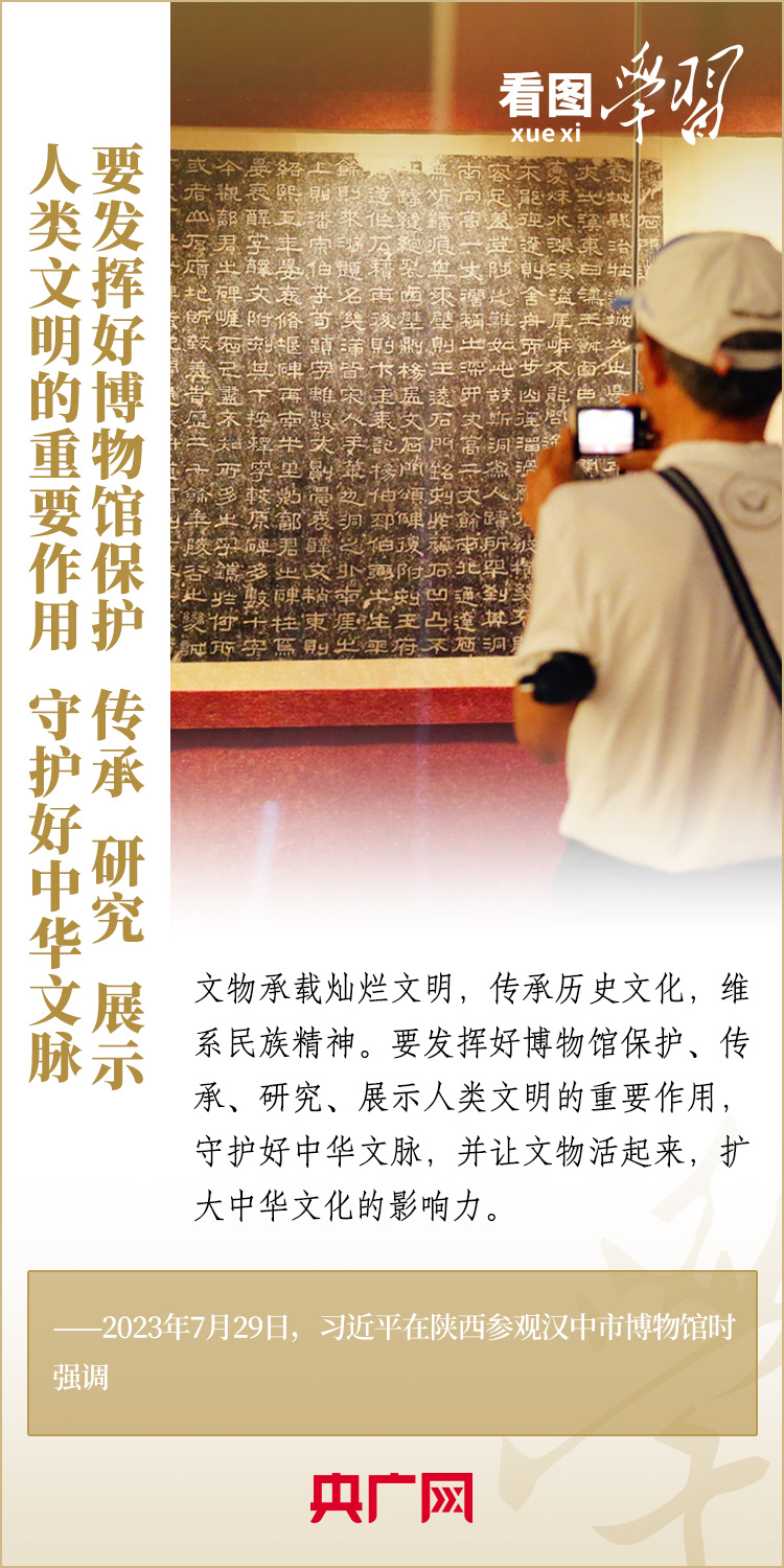 “一座博物館就是一所大學(xué)校”“博物館很重要,我從小就愛看博物館,小時候北京的博物館我差不多都看過了”“博物館建設(shè)要更完善、更成體系,同時發(fā)揮好博物館的教育功能”……在國內(nèi)考察中,習(xí)近平總書記曾經(jīng)多次走進當(dāng)?shù)夭┪镳^,了解館藏文物的收藏、保護、研究情況,對博物館建設(shè)和利用作出重要指示。一起來學(xué)習(xí)!