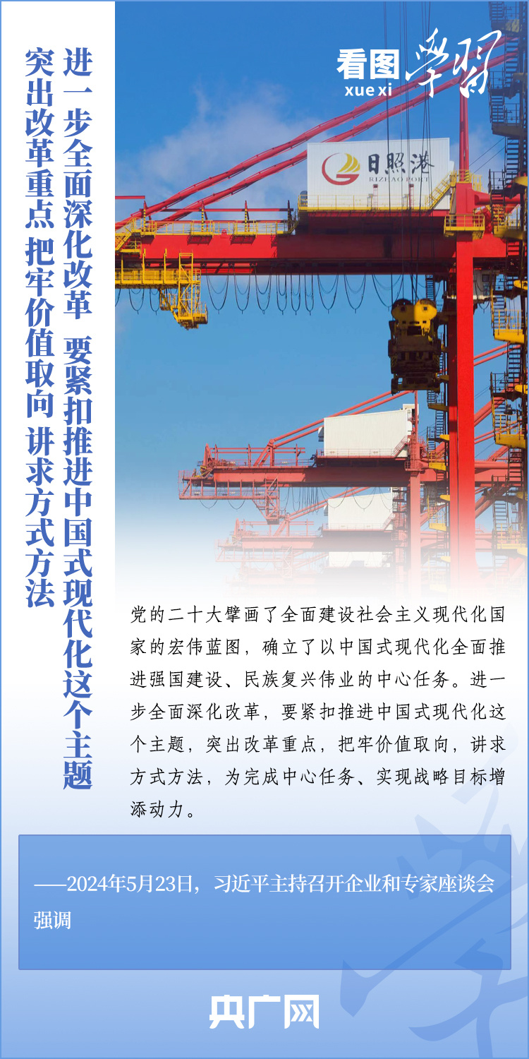 改革是發(fā)展的動(dòng)力。5月23日,習(xí)近平總書記在山東濟(jì)南主持召開企業(yè)和專家座談會(huì)并發(fā)表重要講話??倳洀?qiáng)調(diào),進(jìn)一步全面深化改革,要緊扣推進(jìn)中國(guó)式現(xiàn)代化這個(gè)主題,突出改革重點(diǎn),把牢價(jià)值取向,講求方式方法,為完成中心任務(wù)、實(shí)現(xiàn)戰(zhàn)略目標(biāo)增添動(dòng)力。一起來學(xué)習(xí)!