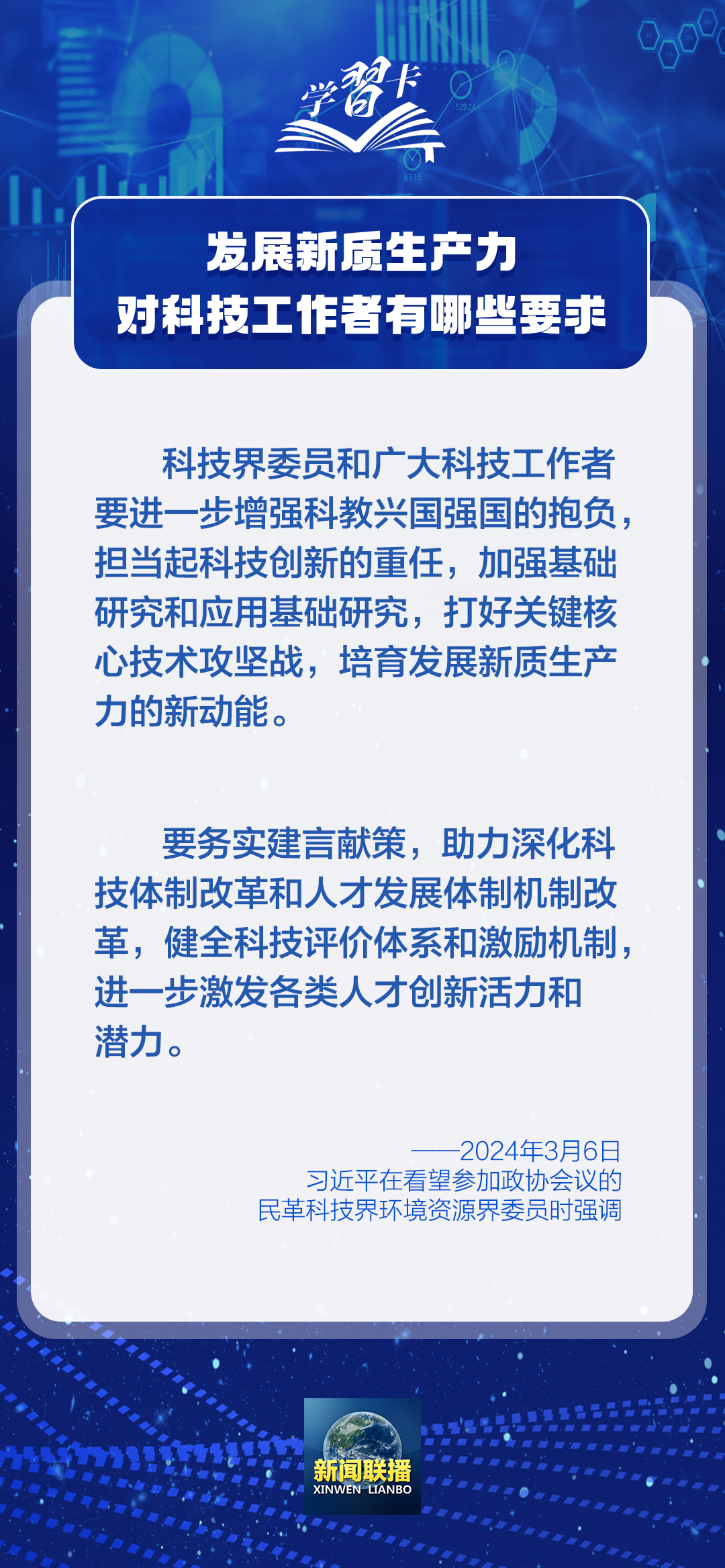 2024年5月30日是第八個“全國科技工作者日”。實現(xiàn)科技自立自強、建設世界科技強國,廣大科技工作者責任重大、使命光榮。培育發(fā)展新質生產(chǎn)力的新動能,廣大科技工作者可以怎么做?習近平總書記的一系列論述指明了方向。一起學習↓↓↓