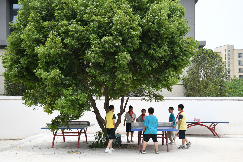 5月31日,學(xué)生在午餐時(shí)聊天。